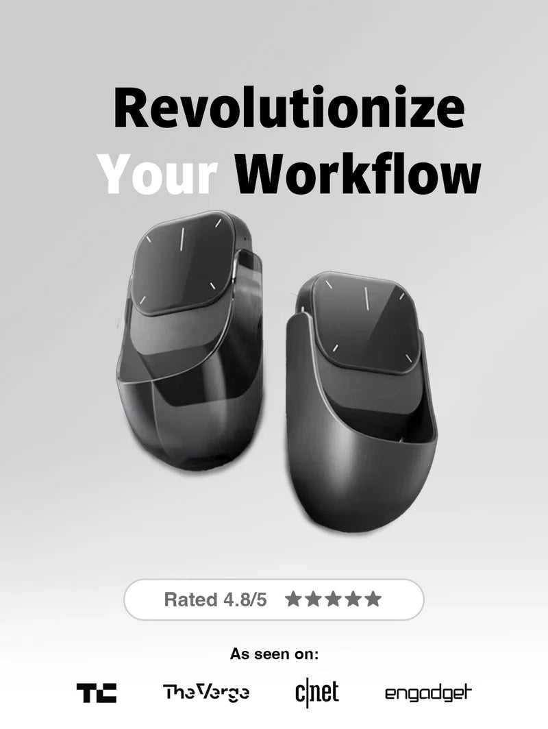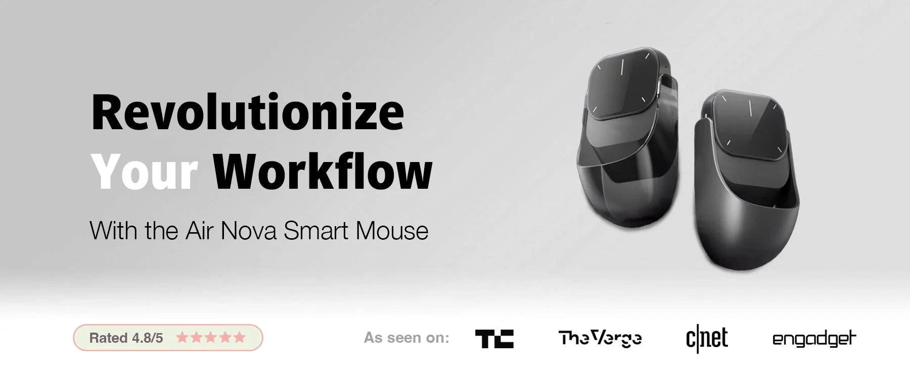 The Air Nova Smart Mouse is a futuristic wireless mouse designed for versatility and innovation. It features a built-in laser pointer for presentations, tactile zoom-in/zoom-out functionality, and an ergonomic design for superior comfort.